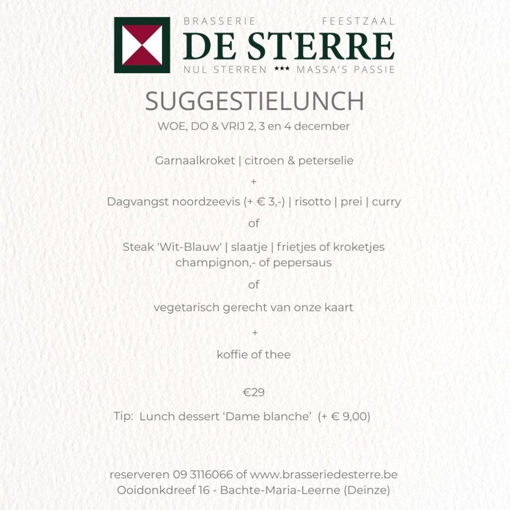 Als hoofdgerecht keuze uit de heerlijke gegrilde steak “wit-blauw” van Hoeveslager Vandeputte uit Nevele of een kraakvers visgerecht volgens dagverse aanvoer.